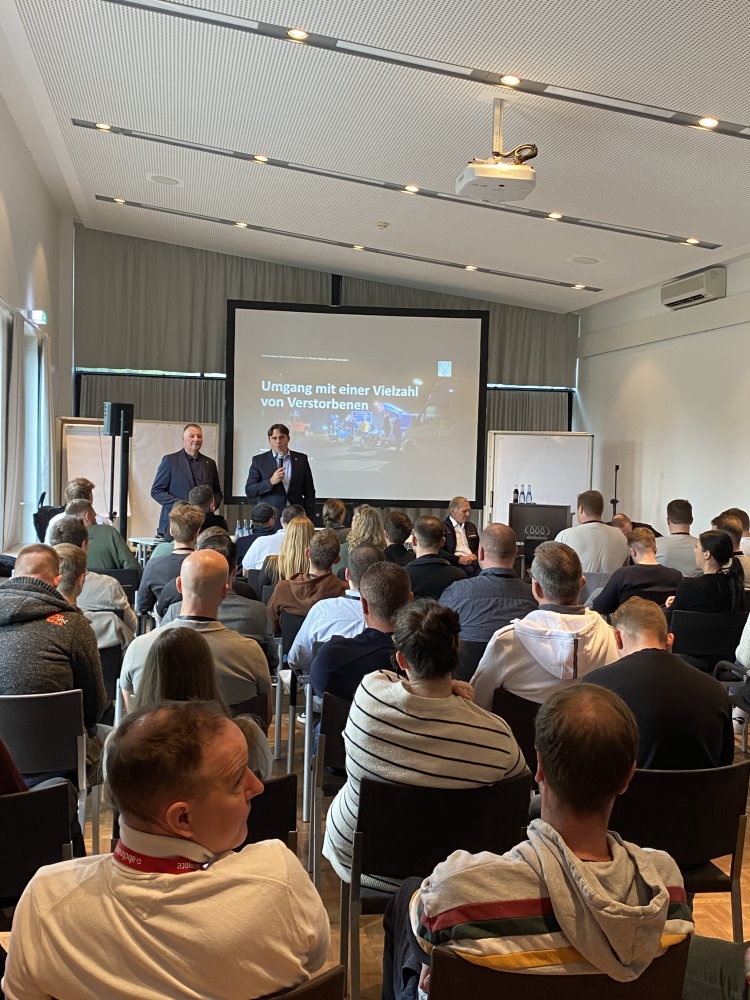 Ein Moment, der allen besonders naheging: der Vortrag von Markus Maichle in Kombination mit 2 Zeitzeugen des Flugzeugabsturzes in Owingen im Jahre 2002. Mit eindrucksvollen Worten sprach er über den Umgang mit einer Vielzahl von Verstorbenen – bewegend, ehrlich, emotional. Viele spürten, wie sehr unsere Arbeit nicht nur Fachlichkeit, sondern auch Herz verlangt. Gänsehautmomente, die lange nachhallen.